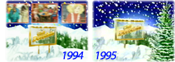 GENERIQUES : Les génériques reprennent donc les éléments de l'habillage Noël précédent, à quelques détails près. Outre la disparition des fenêtres avec des extraits de séries et des animateurs et la présence de nouveaux sapins, on notera surtout pour la première fois la suppression du carton Unité Programmes Jeunesse et Familiaux Dorothée qui ouvrait tous les génériques depuis 1988. Ce carton, symbole fort de la main-mise de Dorothée sur les programmes jeunesse de TF1 est remplacé par un simple TF1 présente, issu de l'habillage d'antenne de la chaîne, et posé sur la première image fixe et floutée. C'est la première fois que se traduit de manière évidente à l'antenne la reprise en main de la chaîne sur ses programmes jeunesse. Après cette introduction, le logo Club Dorothée enneigé arrive tout de suite du haut de l'écran et passe à travers la caméra, et s'ensuit quelques secondes de défilement dans la forêt de sapins (enneigés eux aussi) et des panneaux dorés. Puis un des logos se détache pour réaliser la transition vers le sommaire. Pour les transitions de celui-ci, le fond neige et sapin est de mise avec au premier plan un cadre rouge avec aux extrémités haut gauche et bas droit un ornement avec du houx et des clochettes. Le passage entre les dessins animés et le carton se fait via une transition en volet vénitien diagonal. A l'intérieur du cadre rouge, on retrouve le rendez-vous (ce matin, tout à l'heure...). Enfin après le sommaire, un logo doré fait le chemin inverse et vient se greffer sur un des panneaux de la forêt tandis que le nom du réalisateur est inscrit en rouge et dans la police de caractère principale de cet habillage.