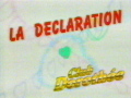 [ La Déclaration ] > Cette nouvelle séquence permet aux téléspectateurs d'envoyer des messages par téléphone aux personnes de leur choix. Ce message, d'amour ou d'amitié, est diffusé pendant l'émission. La séquence possède son propre jingle et évidemment des synthés, un pendant le message et l'autre pour communiquer le numéro de téléphone. Le jingle sera aussi personnalisé pour les vacances d'hiver en Egypte, sur le même principe que les jingles classiques.