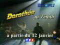 [ Bande-annonce Dorothée au Zénith V2 ] Seconde version de la bande-annonce conçue par TF1 annonçant Dorothée au Zénith de Paris, (la première fut diffusée au printemps dernier) avec ici un changement de date, le concert est désormais programmé à partir du 12 janvier. Cette seconde version est diffusée dès le 20 septembre 95.